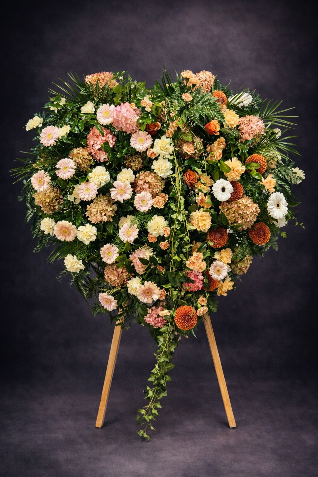 kompozycja w kształce serca z ciętych pastelowych kwiatów, trwały -